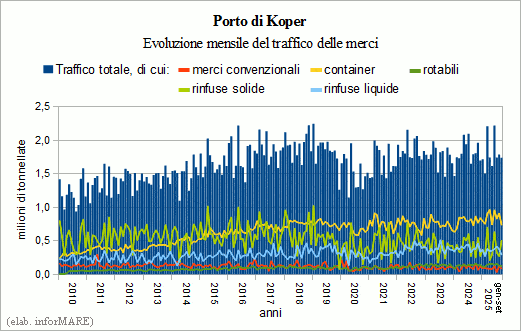 containers with 739 thousand tons (+1.6%), conventional goods with