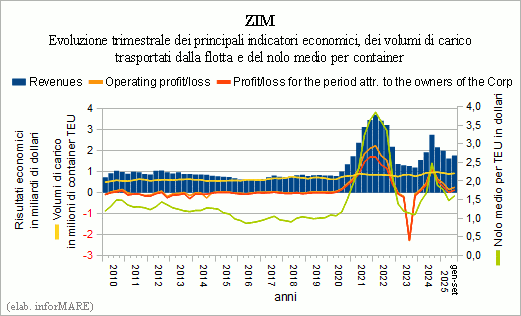 Au cours des neuf premiers mois de cette année, les revenus de ZIM étaient de 5,42 milliards de dollars, en baisse de -13,4 % par rapport à l’année précédente. période correspondante en 2024. L’Ebitda est bénéfice de 1,84 milliard d’euros (-31,8 %), bénéfice d’exploitation de 872,9 milliards d’euros (-53,3 %) et un bénéfice net de 443,2 millions de dollars (-72,1%). Pendant cette période, la flotte de conteneurs transportait 2,77 millions d’EVP, volume inchangé par rapport à la même période de 2024.