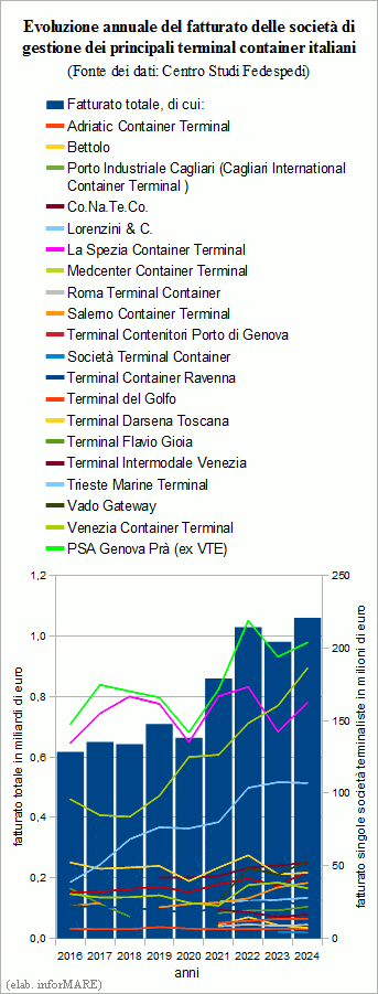 Im Jahr 2024 wuchs der Umsatz der wichtigsten italienischen Containerterminals um +8,1 %