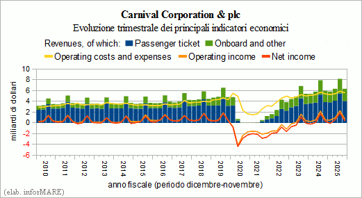 statunitense Carnival Corporation ha registrato ricavi pari a 6,33