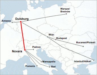 servicio de tren lanzadera entre Duisburg y Novara que incluye seis