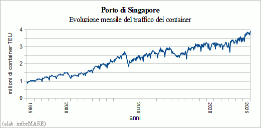 Singapore handled over 3.9 million TEUs, as