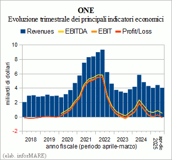 Ocean Network Express (ONE) containerized shipping, with revenues
