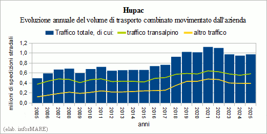 depuis la Suisse, Hupac s’élevait à environ 975 000 expéditions